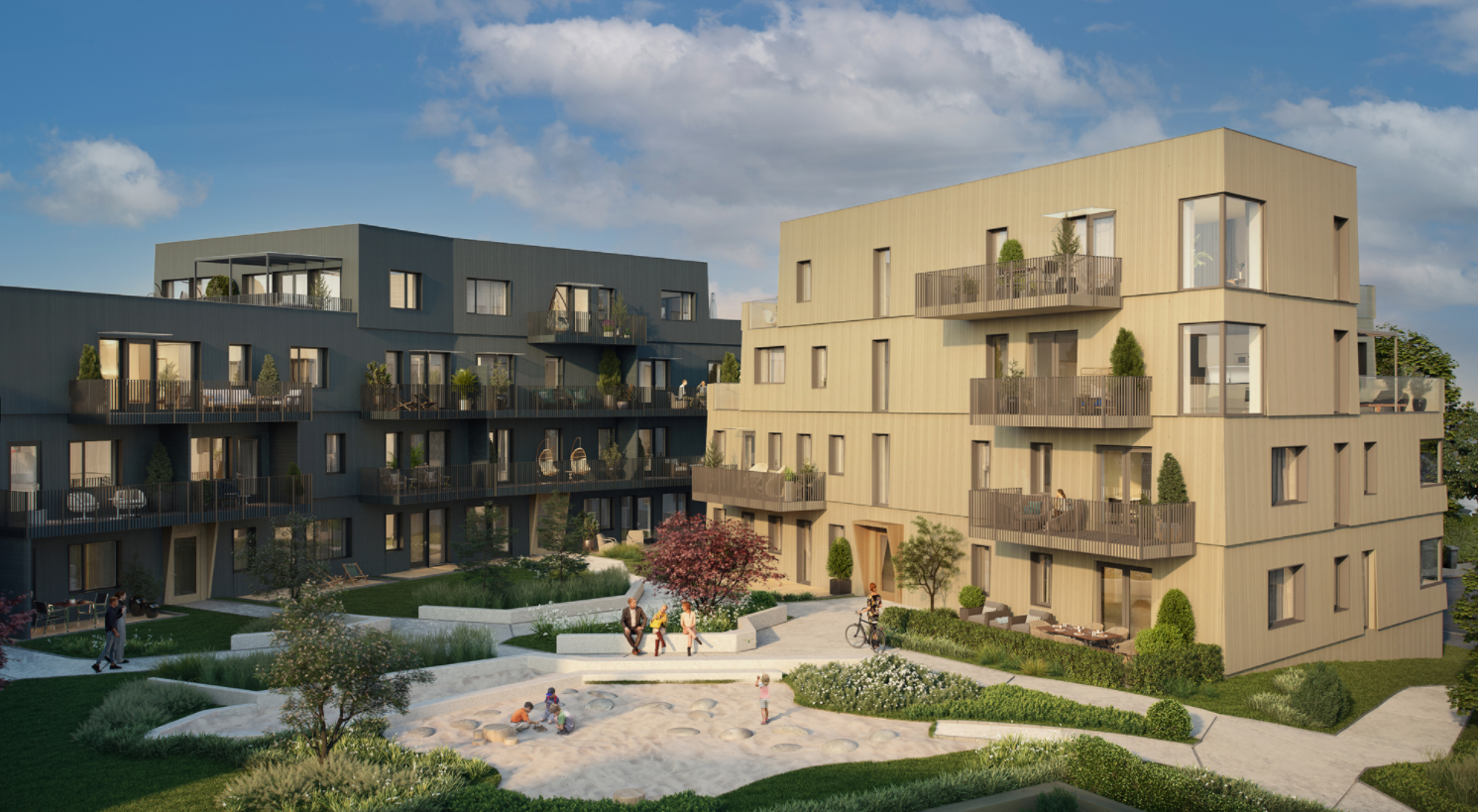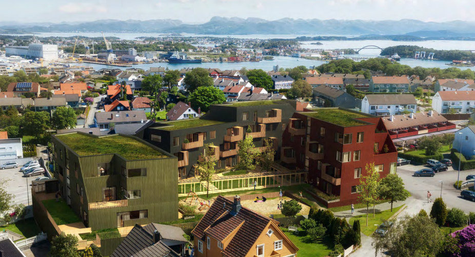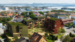 Boligprosjekt med 37 leiligheter og en Coop Extra-butikk på hjørnetomten mellom Jens Otterbechs vei og Randabergveien på Byhaugen.