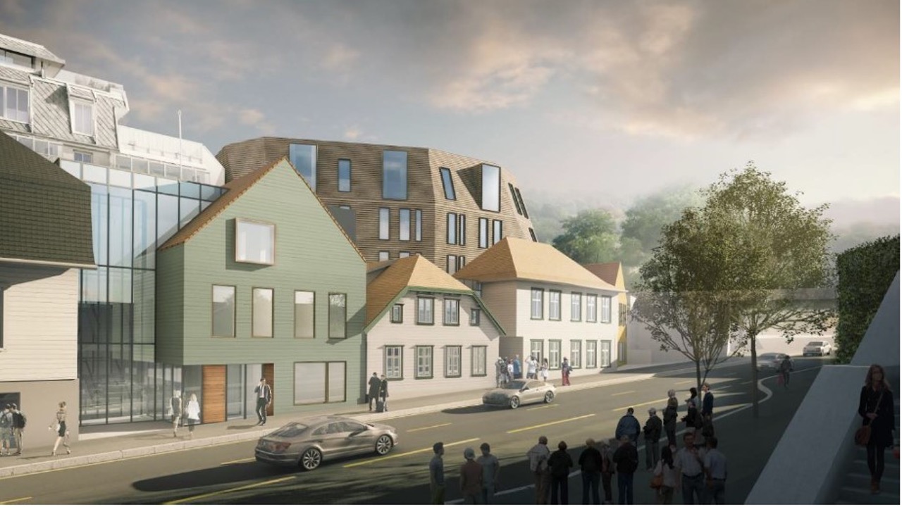 Kontorbygg – rehabilitering og nybygg. Verneverdig trebebyggelse Areal totalt: 3.500 m2